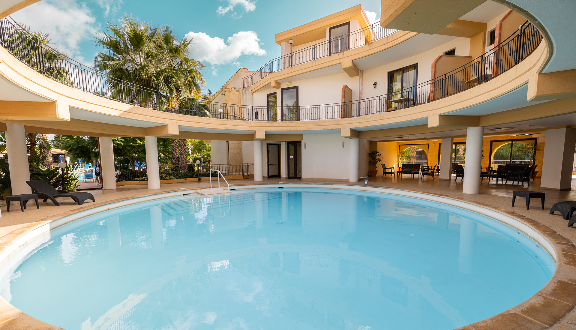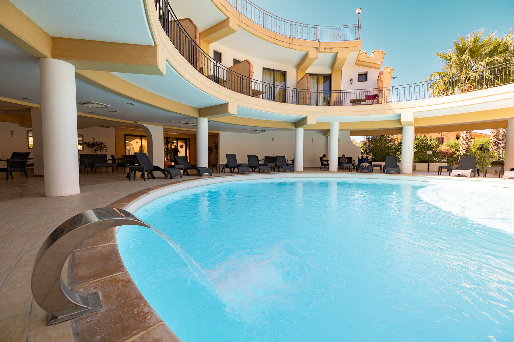 Gli ambienti del nostro hotel sono progettati per regalarvi un’esperienza di relax e convivialità. Alloggi arredati con gusto che sembrano accogliervi con un abbraccio, aree all’aperto che si aprono su panorami unici, piscine che riflettono il cielo e sale interne ed esterne dedicate agli eventi, dove l’ordinario diventa straordinario.